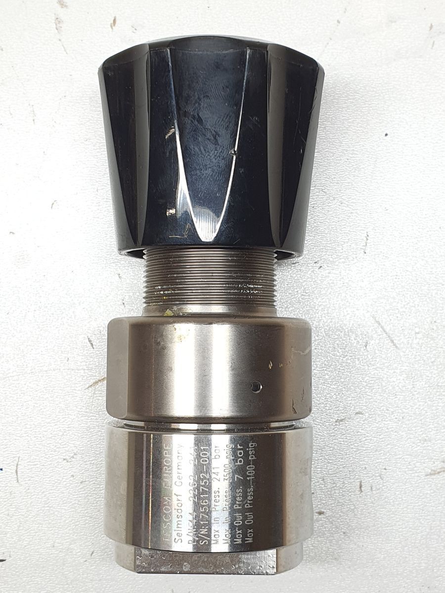 The Tescom 44-2262-241 is a single-stage, pressure-reducing regulator from the Tescom 44-2200 Series, engineered for precise control of gas pressures in specialty, industrial, flammable, or high-purity applications. It features a diffusion-resistant metal diaphragm seal that preserves gas purity and ensures stable regulation over a wide inlet pressure range. The compact, lightweight design makes it suitable for laboratory systems, gas distribution panels, sampling systems, and cylinder regulator applications.